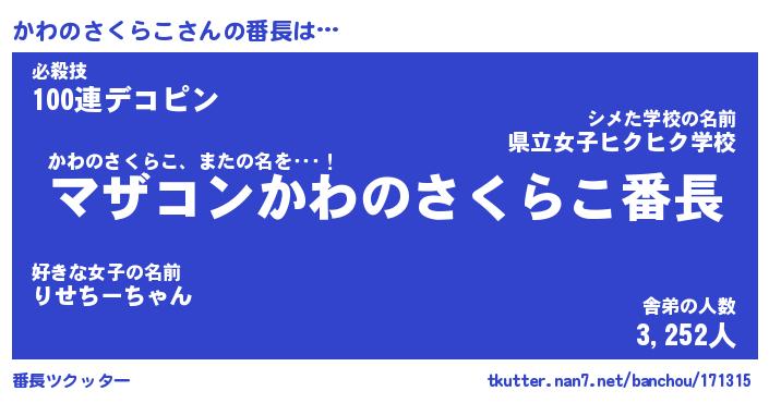 | 肩書あだ名 | 『かわのさくらこ店長』 |