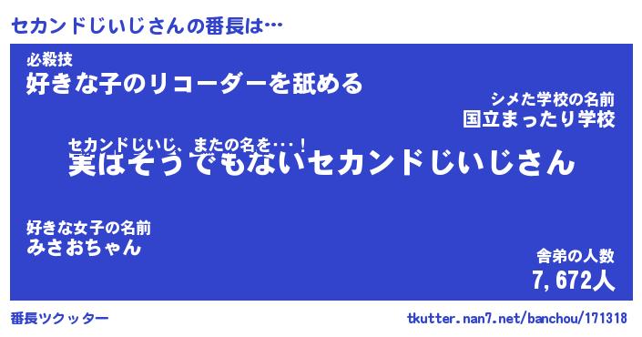 | ピコ太郎風あだ名 | 『セコ一郎』『ピセ十郎』『セカ八郎』 |