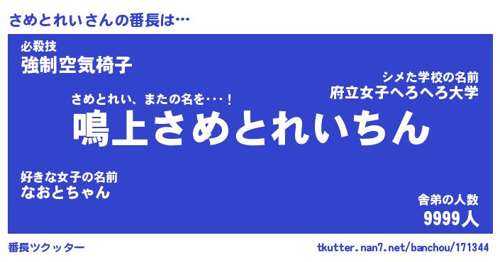 | ヘコむあだ名 | 『さめにー』『牛乳』『さめぷりん』 |