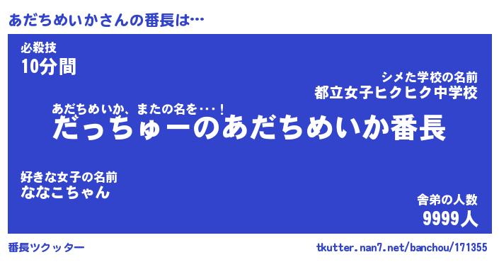 | 肩書あだ名 | 『あだちめいか社長』『あだちめいか団長』 |