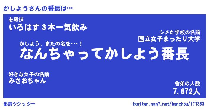 | ピコ太郎風あだ名 | 『カコ次郎』『ピカ一郎』『カシ五郎』 |