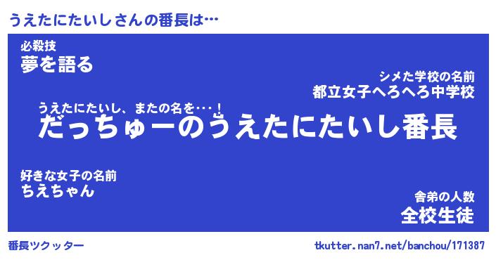 | 伝説のあだ名 | 『伝説のスナイパーうえたにたいし』 |