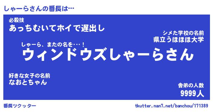| ヘコむあだ名 | 『しゃにー』『酢こんぶ』『しゃお』 |