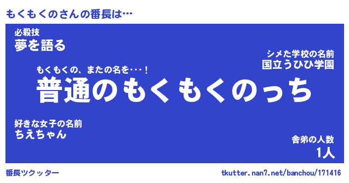 | ヒーロー風カッコイイあだ名 | 『スーパーモクモクノ』『黄金騎士モク』 |