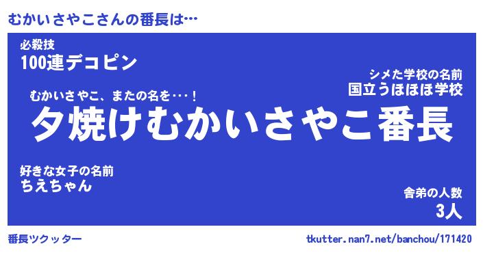 | ヒーロー風カッコイイあだ名 | 『スーパームカイサヤコ』『幻影騎士ムカ』 |