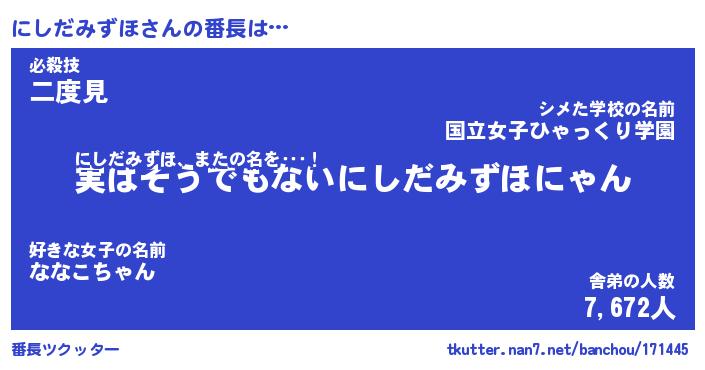 | 2回繰り返すあだ名 | 『にしにし』『ににしし』『ぬるぬる』 |