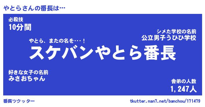 | ヒーロー風カッコイイあだ名 | 『スーパーヤトラ』『ウルトラやとらマン』 |