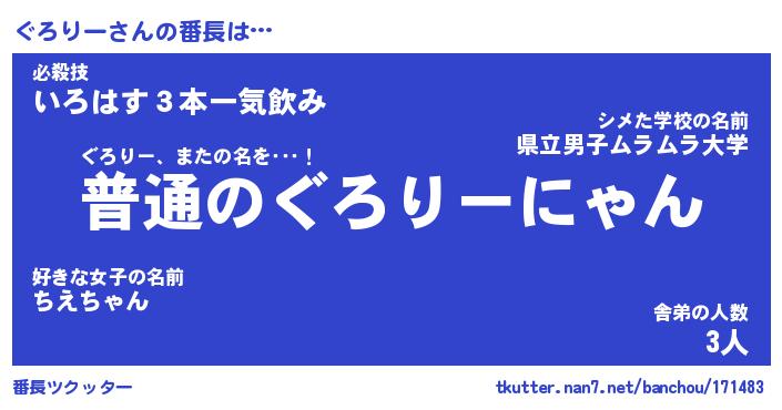 | 肩書あだ名 | 『ぐろりー店長』『ぐろりー大統領』 |