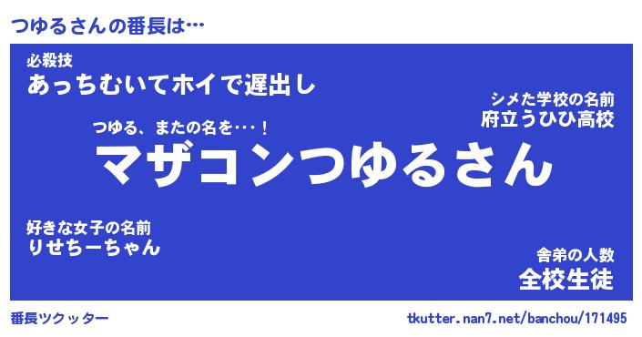 | ファンタジー風あだ名 | 『ツユフェル』『エターナルツユルー』 |