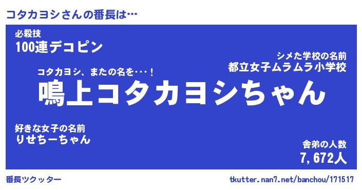 | ピコ太郎風あだ名 | 『ココ史郎』『ピコ次郎』『コタ五郎』 |