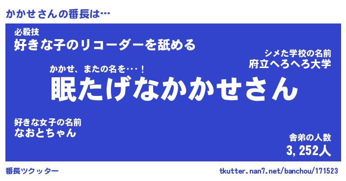 | 意味不明あだ名 | 『ペロリンかかせ』『かかせフォーエバー』 |