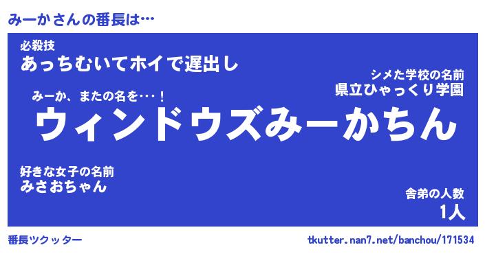 | 肩書あだ名 | 『みーか社長』『みーか国家主席』 |