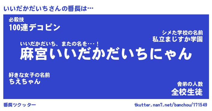| 意味不明あだ名 | 『ペロリンいいだかだいち』 |