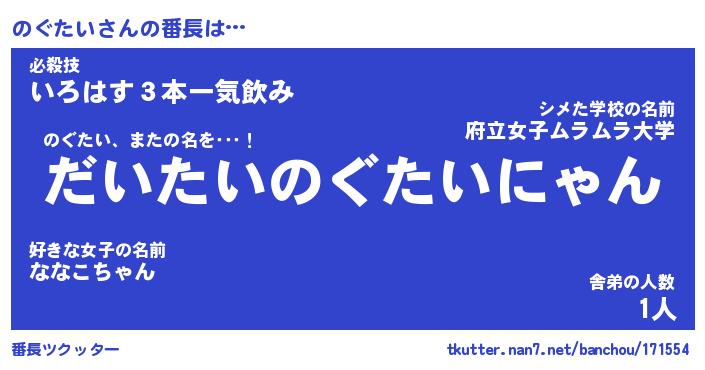 | 意味不明あだ名 | 『ペロリンのぐたい』『永久保存のぐたい』 |