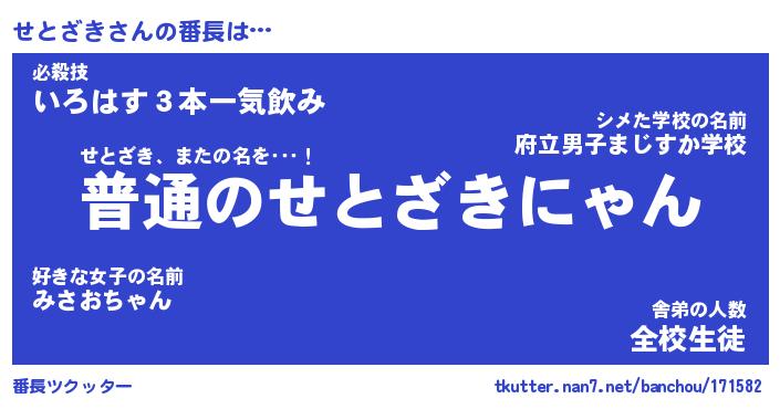 | ファンタジー風あだ名 | 『セトフェル』『エターナルセトザキー』 |
