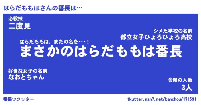 | 意味不明あだ名 | 『ペロリンはらだももは』 |