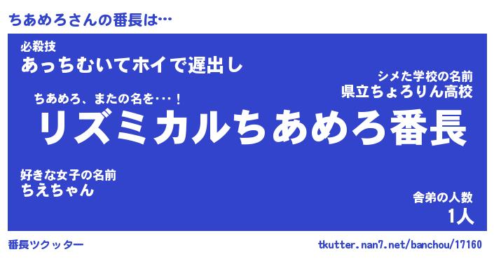 | 伝説のあだ名 | 『伝説のスナイパーちあめろ』 |
