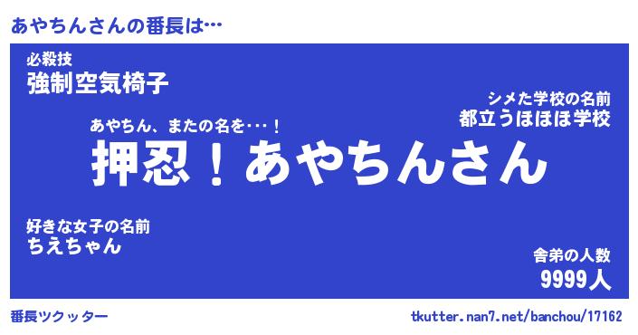 | ヒーロー風カッコイイあだ名 | 『スーパーアヤチン』『銀牙騎士アヤ』 |