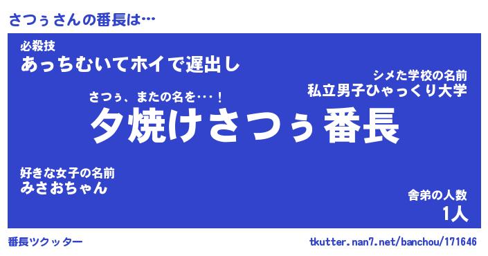 | ファンタジー風あだ名 | 『サツフェル』『エターナルサツゥー』 |