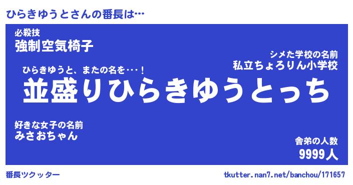 | ヒーロー風カッコイイあだ名 | 『スーパーヒラキユウト』『暗黒騎士ヒラ』 |
