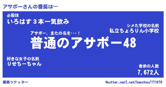 | 意味不明あだ名 | 『ペロリンアサボー』『永久保存アサボー』 |