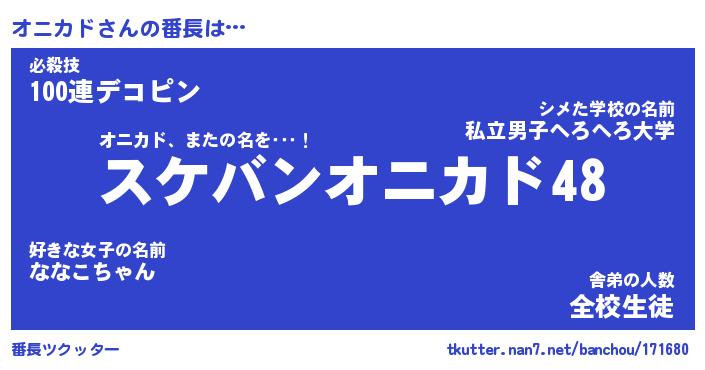 | 胡散臭い通販商品みたいなあだ名 | 『モテモテ間違いなし霊験あらたかなお札…その名も「オニカド」』 |