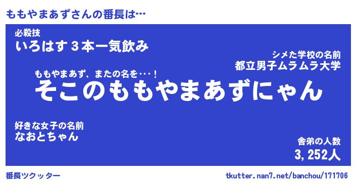 | 肩書あだ名 | 『ももやまあず店長』『ももやまあず班長』 |