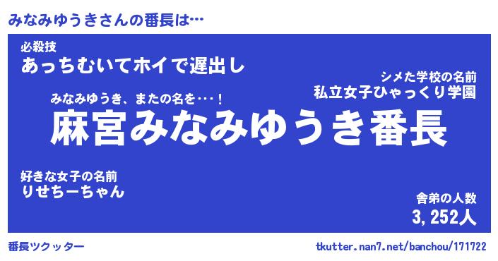 | ヒーロー風カッコイイあだ名 | 『スーパーミナミユウキ』『幻影騎士ミナ』 |