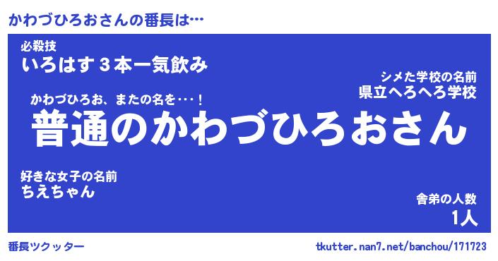 | 肩書あだ名 | 『かわづひろお社長』『かわづひろお班長』 |