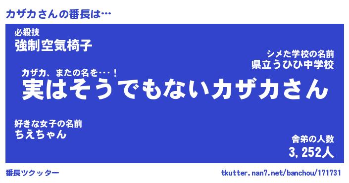 | ポケモン風あだ名 | 『カザチュウ』『カザカダネ』 |