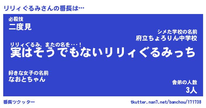 | 2回繰り返すあだ名 | 『リリリリ』『リリリリ』『ぬれぬれ』 |