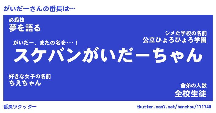 | ポケモン風あだ名 | 『ガイチュウ』『ガイダダネ』 |