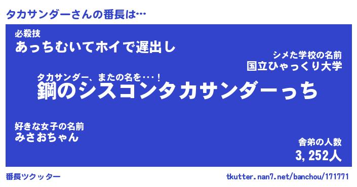 | 欧米人風あだ名 | 『マイケルタカサンダー』 |