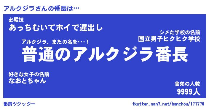 | ヒーロー風カッコイイあだ名 | 『スーパーアルクジラ』『天弓騎士アル』 |