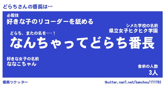 | 意味不明あだ名 | 『ペロリンどらち』『どらちフォーエバー』 |