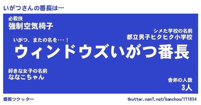 | ピコ太郎風あだ名 | 『イコ十郎』『ピイ三郎』『イガ次郎』 |