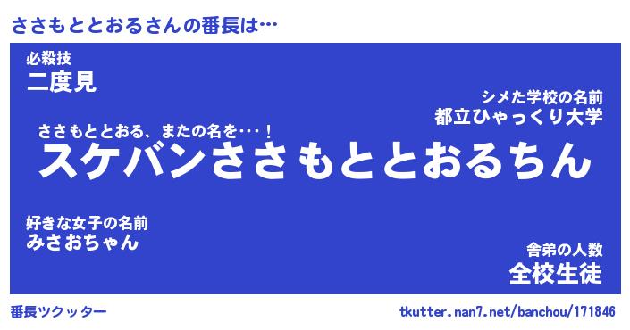 | ヒーロー風カッコイイあだ名 | 『スーパーササモトトオル』 |