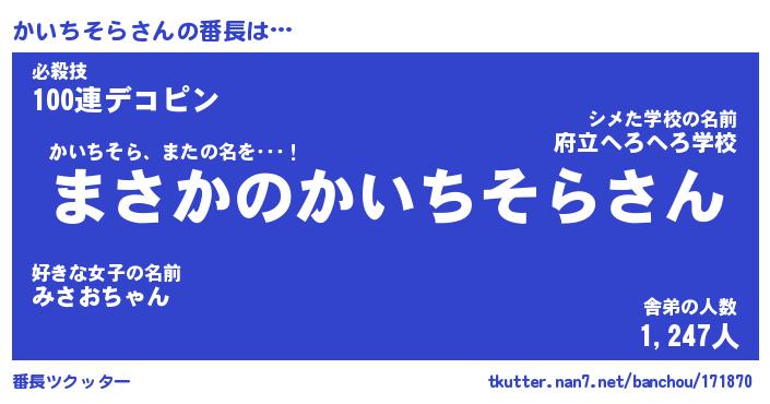| 男性向けラノベタイトル風あだ名 | 『かいちそらの憂鬱』 |