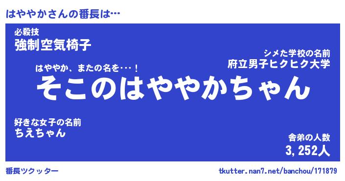 | ポケモン風あだ名 | 『ハヤチュウ』『ハヤヤダネ』 |