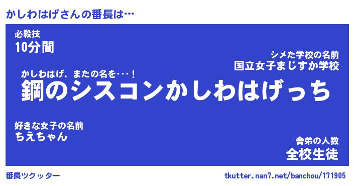 | 欧米人風あだ名 | 『マイケルかしわはげ』 |