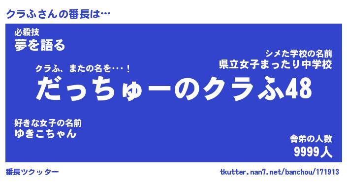 | 意味不明あだ名 | 『ペロリンクラふ』『クラふフォーエバー』 |