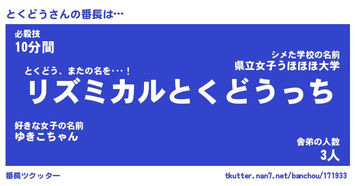 | ファンタジー風あだ名 | 『トクフェル』『エターナルトクドウー』 |