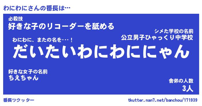 | 肩書あだ名 | 『わにわに御曹司』『わにわに国家主席』 |