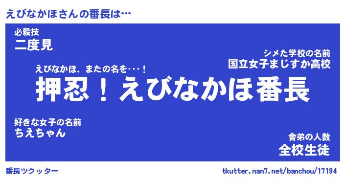 | 肩書あだ名 | 『えびなかほ店長』『えびなかほ大統領』 |