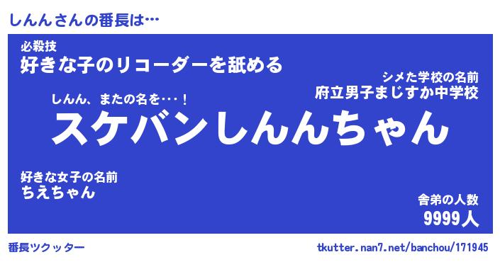 | ヒーロー風カッコイイあだ名 | 『スーパーシンン』『ウルトラしんんマン』 |