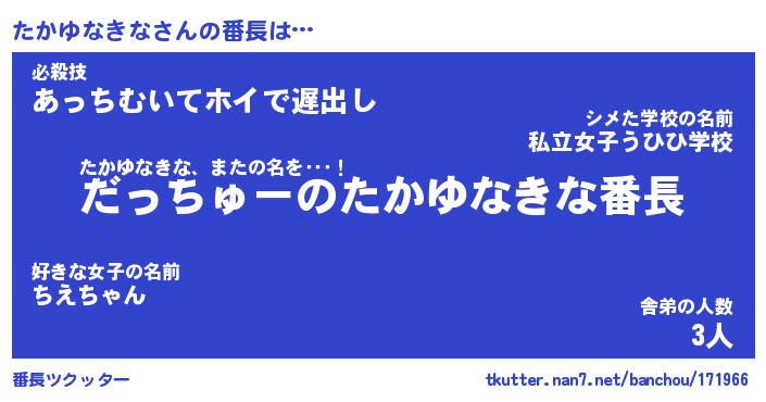 | 肩書あだ名 | 『たかゆなきな店長』『たかゆなきな団長』 |