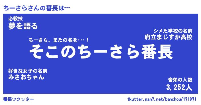 | 肩書あだ名 | 『ちーさら店長』『ちーさら大統領』 |