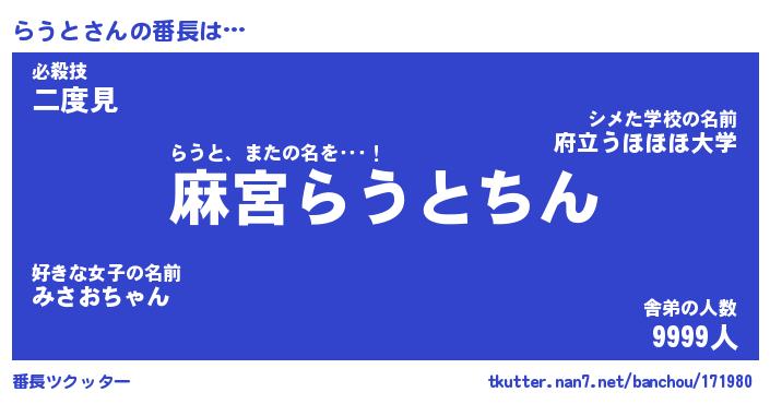 | 意味不明あだ名 | 『ペロリンらうと』『らうとフォーエバー』 |