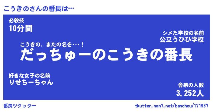| ヒーロー風カッコイイあだ名 | 『スーパーコウキノ』『幻影騎士コウ』 |