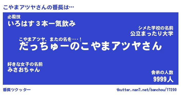 | ヒーロー風カッコイイあだ名 | 『スーパーコヤマアツヤ』『天弓騎士コヤ』 |